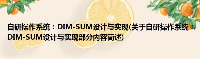 导读 大家好,今天小方来说说一篇关于自研操作系统:DIM-SUM设计与实现,关于自研操作系统:DIM-SUM设计与实现部分内容简述的文章,那么现在就为