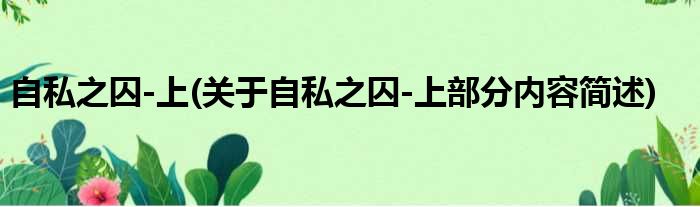 自私之囚-上(关于自私之囚-上部分内容简述)