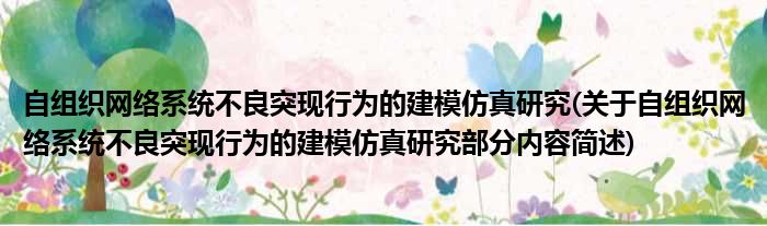 自组织网络系统不良突现行为的建模仿真研究(关于自组织网络系统不良突现行为的建模仿真研究部分内容简述)