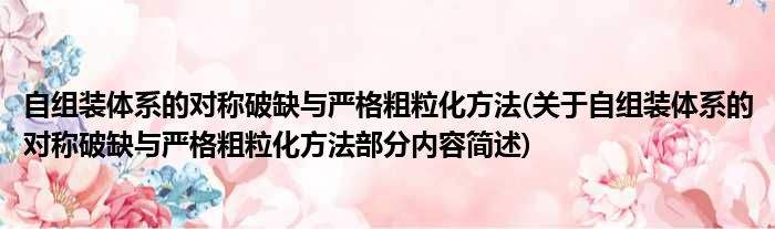 自组装体系的对称破缺与严格粗粒化方法(关于自组装体系的对称破缺与严格粗粒化方法部分内容简述)