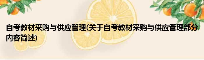 自考教材采购与供应管理(关于自考教材采购与供应管理部分内容简述)