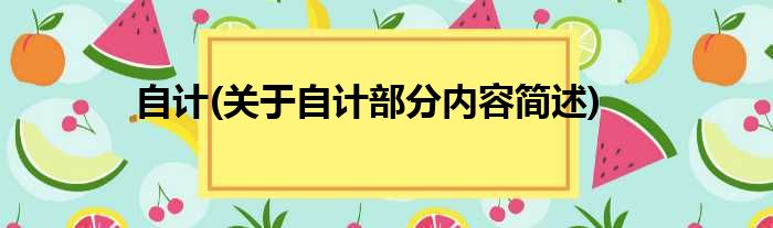 大家好,今天小方来说说一篇关于自计,关于自计部分内容简述的文章,那么现在就为大家来简单介绍下,希望对各位小伙伴们有所帮助。