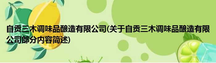 自贡三木调味品酿造有限公司(关于自贡三木调味品酿造有限公司部分内容简述)
