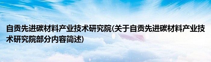 自贡先进碳材料产业技术研究院(关于自贡先进碳材料产业技术研究院部分内容简述)