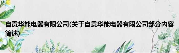 自贡华能电器有限公司(关于自贡华能电器有限公司部分内容简述)