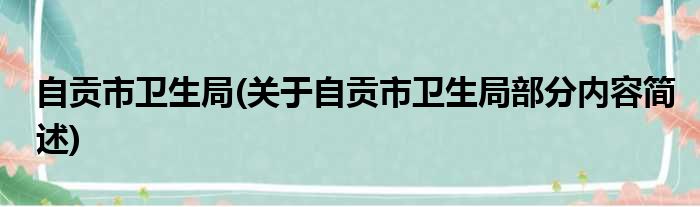 自贡市卫生局(关于自贡市卫生局部分内容简述)