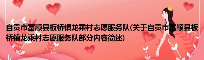 自贡市富顺县板桥镇龙乘村志愿服务队(关于自贡市富顺县板桥镇龙乘村志愿服务队部分内容简述)