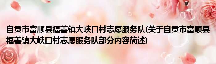 自贡市富顺县福善镇大峡口村志愿服务队(关于自贡市富顺县福善镇大峡口村志愿服务队部分内容简述)