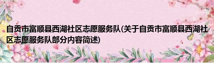 自贡市富顺县西湖社区志愿服务队(关于自贡市富顺县西湖社区志愿服务队部分内容简述)