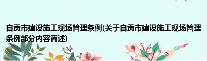 自贡市建设施工现场管理条例(关于自贡市建设施工现场管理条例部分内容简述)