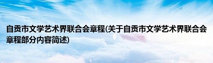 导读 大家好,今天小方来说说一篇关于自贡市文学艺术界联合会章程,关于自贡市文学艺术界联合会章程部分内容简述的文章,那么现在就为大家来简单