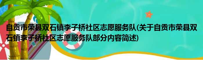 自贡市荣县双石镇李子桥社区志愿服务队(关于自贡市荣县双石镇李子桥社区志愿服务队部分内容简述)