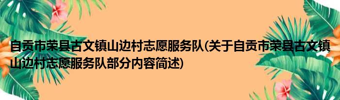 自贡市荣县古文镇山边村志愿服务队(关于自贡市荣县古文镇山边村志愿服务队部分内容简述)