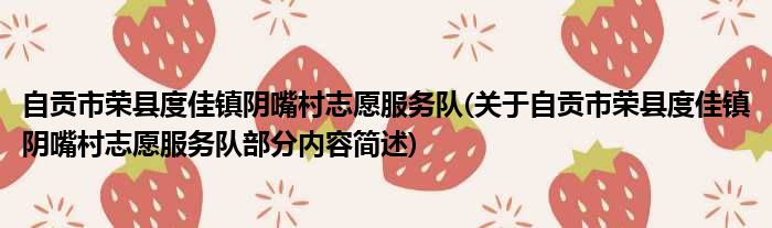 自贡市荣县度佳镇阴嘴村志愿服务队(关于自贡市荣县度佳镇阴嘴村志愿服务队部分内容简述)