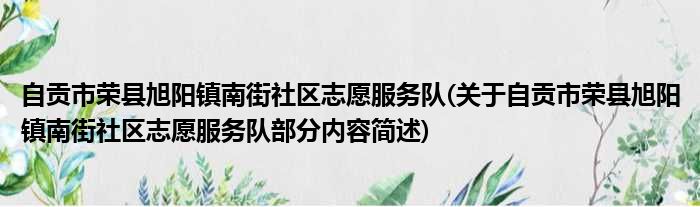 自贡市荣县旭阳镇南街社区志愿服务队(关于自贡市荣县旭阳镇南街社区志愿服务队部分内容简述)