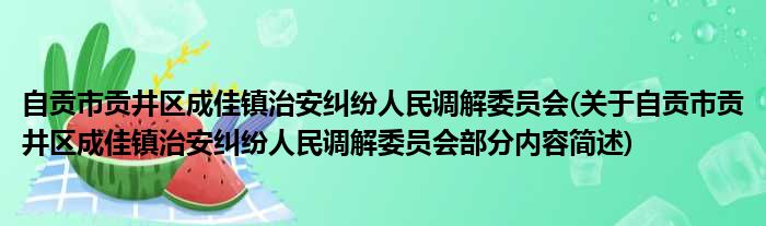 自贡市贡井区成佳镇治安纠纷人民调解委员会(关于自贡市贡井区成佳镇治安纠纷人民调解委员会部分内容简述)