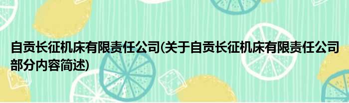 自贡长征机床有限责任公司(关于自贡长征机床有限责任公司部分内容简述)