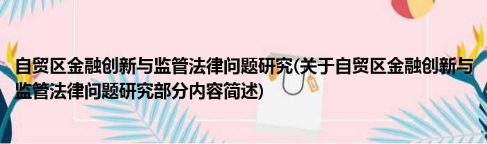 自贸区金融创新与监管法律问题研究(关于自贸区金融创新与监管法律问题研究部分内容简述)