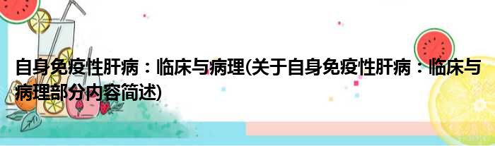导读 大家好,今天小方来说说一篇关于自身免疫性肝病:临床与病理,关于自身免疫性肝病:临床与病理部分内容简述的文章,那么现在就为大家来简单