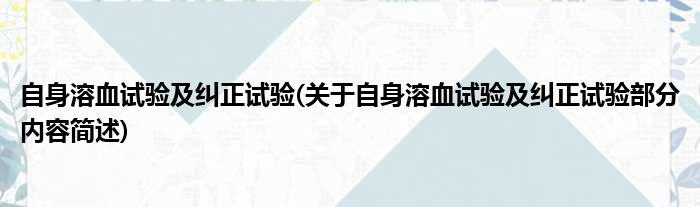 自身溶血试验及纠正试验(关于自身溶血试验及纠正试验部分内容简述)