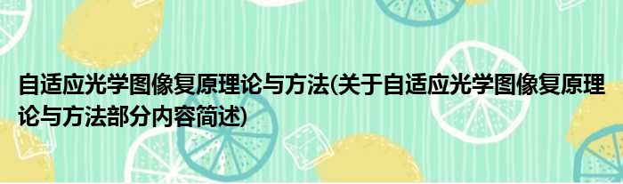 自适应光学图像复原理论与方法(关于自适应光学图像复原理论与方法部分内容简述)
