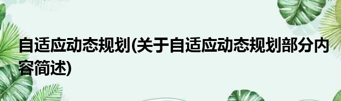大家好,今天小方来说说一篇关于自适应动态规划,关于自适应动态规划部分内容简述的文章,那么现在就为大家来简单介绍下,希望对各位小伙伴们有所帮助。