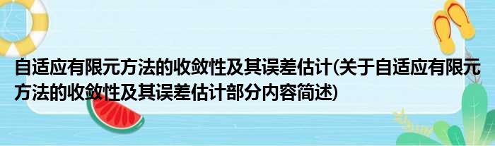 自适应有限元方法的收敛性及其误差估计(关于自适应有限元方法的收敛性及其误差估计部分内容简述)