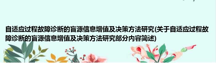 自适应过程故障诊断的盲源信息增值及决策方法研究(关于自适应过程故障诊断的盲源信息增值及决策方法研究部分内容简述)
