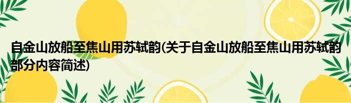 自金山放船至焦山用苏轼韵(关于自金山放船至焦山用苏轼韵部分内容简述)