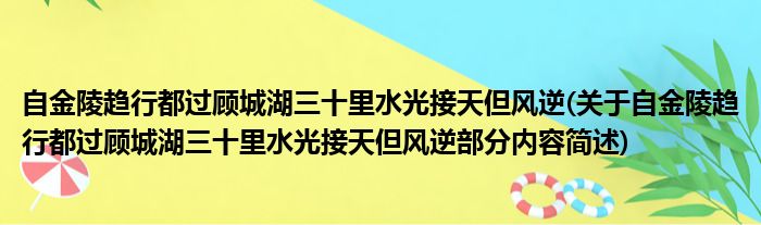 自金陵趋行都过顾城湖三十里水光接天但风逆(关于自金陵趋行都过顾城湖三十里水光接天但风逆部分内容简述)