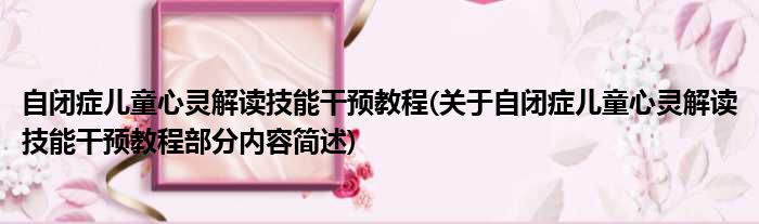 自闭症儿童心灵解读技能干预教程(关于自闭症儿童心灵解读技能干预教程部分内容简述)