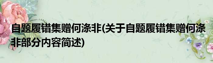 自题履错集赠何涤非(关于自题履错集赠何涤非部分内容简述)