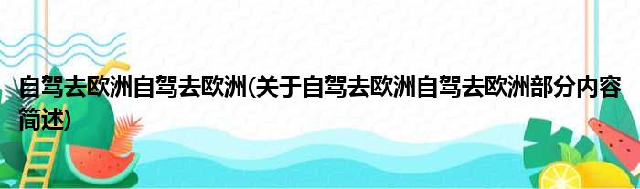 自驾去欧洲自驾去欧洲(关于自驾去欧洲自驾去欧洲部分内容简述)