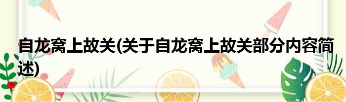 自龙窝上故关(关于自龙窝上故关部分内容简述)