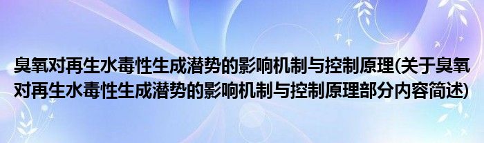 臭氧对再生水毒性生成潜势的影响机制与控制原理(关于臭氧对再生水毒性生成潜势的影响机制与控制原理部分内容简述)