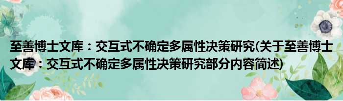 大家好,今天小方来说说一篇关于至善博士文库:交互式不确定多属性决策研究,关于至善博士文库:交互式不确定多属性决策研究部分内容简述的文章,那么现在就为大家来简单介绍下,希望对各位小伙伴们有所帮助。