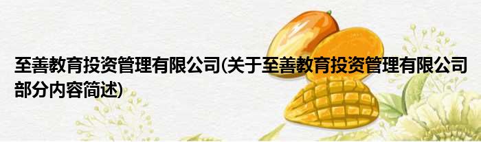 至善教育投资管理有限公司(关于至善教育投资管理有限公司部分内容简述)
