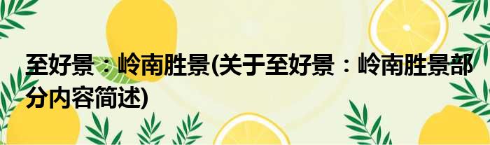 至好景:岭南胜景(关于至好景:岭南胜景部分内容简述)