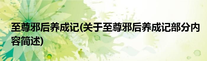 至尊邪后养成记(关于至尊邪后养成记部分内容简述)