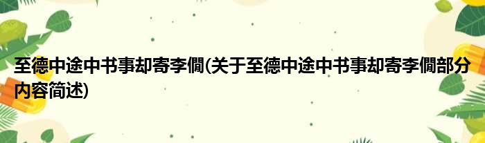 至德中途中书事却寄李僩(关于至德中途中书事却寄李僩部分内容简述)