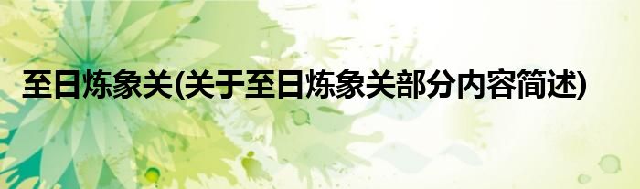 导读 大家好,今天小方来说说一篇关于至日炼象关,关于至日炼象关部分内容简述的文章,那么现在就为大家来简单介绍下,希望对各位小伙伴们有所帮