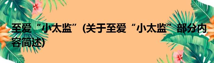 至爱“小太监”(关于至爱“小太监”部分内容简述)