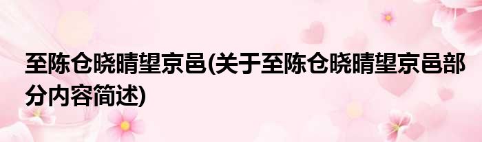 至陈仓晓晴望京邑(关于至陈仓晓晴望京邑部分内容简述)