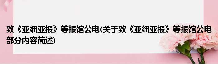 导读 大家好,今天小方来说说一篇关于致《亚细亚报》等报馆公电,关于致《亚细亚报》等报馆公电部分内容简述的文章,那么现在就为大家来简单介绍