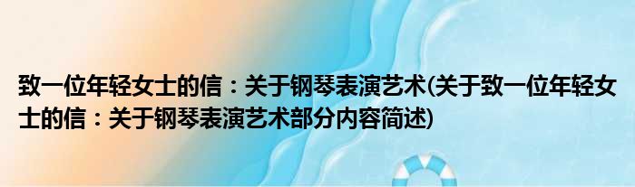 导读 大家好,今天小方来说说一篇关于致一位年轻女士的信:关于钢琴表演艺术,关于致一位年轻女士的信:关于钢琴表演艺术部分内容简述的文章,那