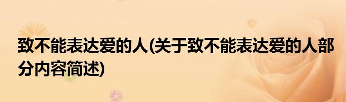 致不能表达爱的人(关于致不能表达爱的人部分内容简述)