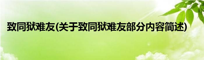 大家好,今天小方来说说一篇关于致同狱难友,关于致同狱难友部分内容简述的文章,那么现在就为大家来简单介绍下,希望对各位小伙伴们有所帮助。