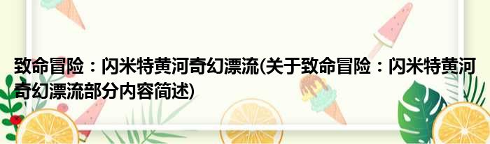 致命冒险:闪米特黄河奇幻漂流(关于致命冒险:闪米特黄河奇幻漂流部分内容简述)