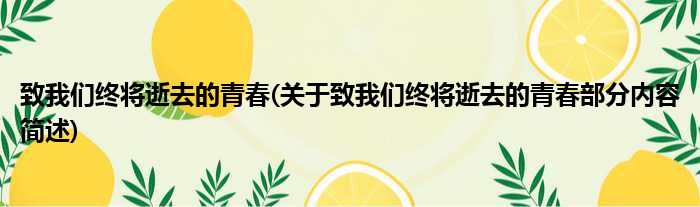 致我们终将逝去的青春(关于致我们终将逝去的青春部分内容简述)