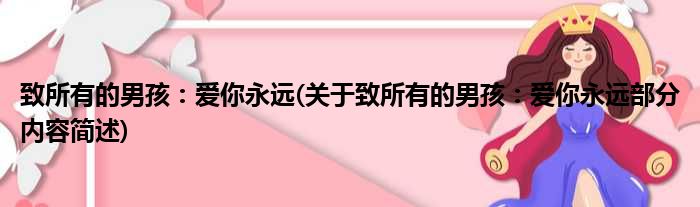 导读 大家好,今天小方来说说一篇关于致所有的男孩:爱你永远,关于致所有的男孩:爱你永远部分内容简述的文章,那么现在就为大家来简单介绍下,